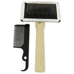 Szczotka dwustronna drewniana nylonowe i druciane włosie do rozczesywania makramy 180x100mm