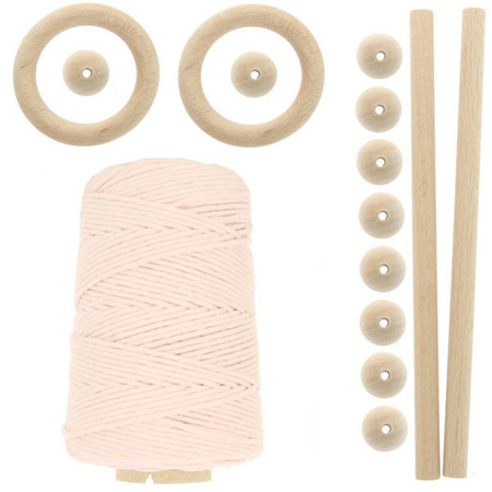 - Zestaw dla początkujących do tworzenia niesamowitych kompozycji makamowych i dzierganych. W komplecie znajdziesz : sznurek skręcany 3mm ~200m oraz akcesoria tj. koraliki drewniane, kijki do makramy, kółka do kwietnika.